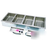 Hot Food Well Unit, Drop-in, EZ lock, Electric, insulated, individual pan design, wet or dry type, with drain & manifold, four-pan size for 12" x 20" pans, infinite controls