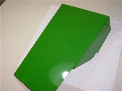 New rear side shield for the left hand side of the 4010 and 4020 (To serial number 200999) John Deere tractors. This new shield is a replacement for John Deere part number AR26770. This rear side shield is made in the USA. John Deere's price for the AR26770 is over $140.00.