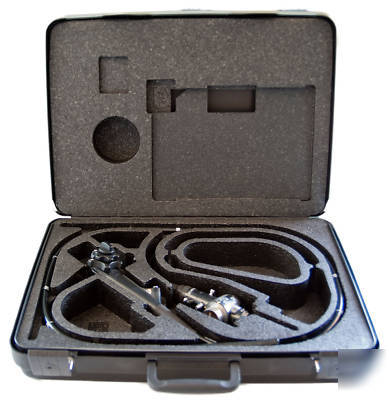 Enjoy this Olympus colonoscope CF-Q160L that comes with the set. It is in very good condition ready for surgery. Original shiny insertion tube with white numbers and excellent image. No buckles except next tot he boot. It features superior image quality, 12.8mm insertion tube outer diameter, 3.7mm biopsy instrument Channel, extra wide 140 degree field of view, scope ID function, and 168 cm Working Length. These "Q" model scopes are 'preferred' because of their full size images. Serial # 2102021