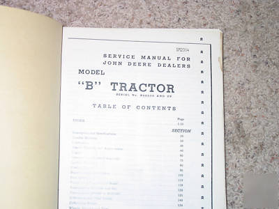 For your consideration today is an original John Deere B service manual for Serial #96001 and higher tractors. Overall its in good shape the rear cover and the very edges of some of the pages have some staining but nothing major. This is an original JD manual and just judging from the style of the JD emblem in the lower right corner of the cover page I'm guessing its from the late 60's to early 70's