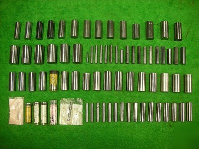 This listing is for 78 used gauge pins in good overall condition, as seen. Many are etched with the sizing marked on the sides of them. These have been in storage for years and there are some that may have spots of light surface rust or oxidation, scratches, scuffs, and light dings on some of the gauge pins, but these blemishes are very minor. A few of the unmarked pins may have very slightly chipped on one end as well, but most of the pins are intact and all appear to be very usable. This is an assortment of many different sizes of gauge pins ranging from .0815" to 1.002+". There are 33 pins which are unreadable or are unmarked and their sizing has not been actually measured. The etched marked pins include sizes .0815, .1715, .2230, .2367, .255, .279+, .330+, .361+, .368+, .400+, .4300, .435+, .492+, .4997+, .599-, .600-, .601-, .640-, .643, .653+, .663-, .725-, .726-, .748-, .749-, .753, .794, .797+, .813+, .849-, .850-, .851-, .876+, .878+, .921+, .922, .922+, .958+, .960+, .975-, .997, .999+, and 1.002+ inches. Some are marked as class X or ZZ, but many of the pins' classes have not been actually checked or measured. This is a great mixed assorted lot to restock your inventory inexpensively! Don't miss your chance to own these items now!
