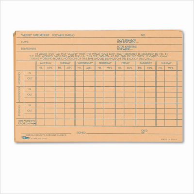 TOPS BUSINESS FORMS TOP3017 - TOPS BUSINESS FORMS Employee Time Report Card, Weekly, 6 x 4, 100 per Pack - TOPS BUSINESS FORMS TOP3017