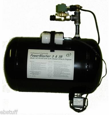 The PowerBlaster Air Cannon operates from a low-voltage 24VAC wall-plugin. It is easy to assemble, and cannot be connected incorrectly. You need only supply compressed air in the range of 50-100PSI from an air compressor. The air line is connected with standard industrial quick-connects. This unit comes equipped with a high-flow high-pressure solid brass ASCO 1/2" valve, not a cheap water heater gas valve or sprinkler valve.The Electronic Controller is pre-programmed with nine(9) different automatic & semi-automatic firing patterns!