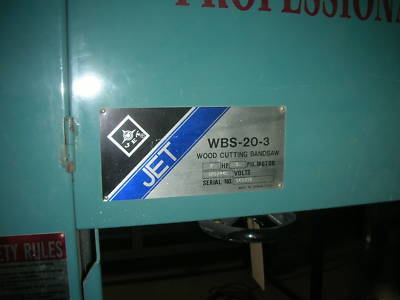 > Jet wbs-20-3 vertical bandsaw excellent condition