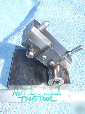 THIS IS USED ON SURFACE GRINDERS WITH MAGNETIC CHUCKS TO DRESS BOTTOMS AND SIDES OF GRINDING WHEELS AT A PRECISE ANGLE FOR PRECISE GRINDING APPLICATIONS WHEN USED WITH MAGNETIC CHUCK ON CORRECT MACHINE. BASE (1) MEASURES 2.995" WIDE x 3.524" LONG AND IS 2-1/8" TALL OVER THE SLIDE. BASE BOTTOM HAS VERY VERY LIGHT STAINING. SLIDE MOVEMENT IS APPX. 1" TO 1-1/2" APPX OF TRAVEL.
