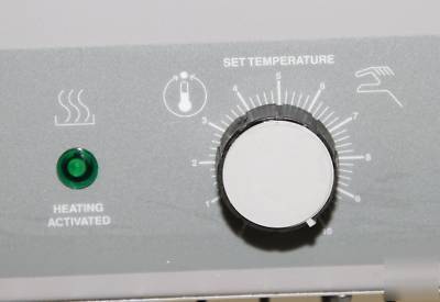 Efficient heating is supplied by economical, low-watt density strip heaters. Galvanized, cold-rolled steel chamber is insulated with 5.1cm (2") of industrial fiberglass to minimize heat loss and hold temperature within the chamber uniform to 0.5 @ 37 C. Incubator door is tightly sealed by a 1.3cm (1/2") silicone gasket. Glossy white interior for easy contamination detection. Temperature range is 5 above ambient to 70 C. Temperature is regulated by a hydraulic temperature controller, except in the Model 1500EM incubator, which features a digital controller.
