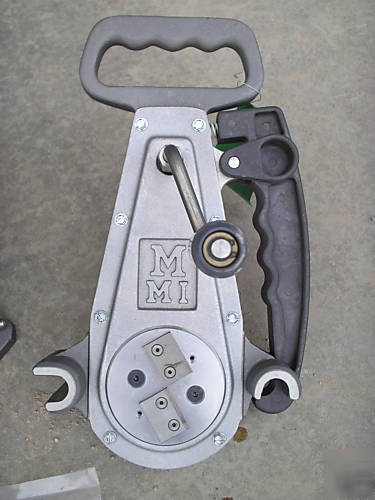 The No.2LC Machine will butt fuse 1/2" CTS to 2" IPS (16mm to 60mm) pipe. It employs a semi-automatic locking cam system to maintain force during the cooling cycle. The No.2LC incorporates McElroy's patented Centerline guidance system, and is designed to butt fuse tees, ells, and other fittings. The machine is made primarily of surface hardened aluminum for light weight and durability. The jaws and inserts have multiple serrations for maximum grip on the pipe.