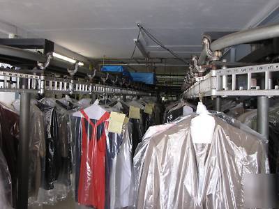 Also, available are many related items used in the business such as counters, fans, tables, storage cabinets, irons, poly rack bagger, some spare parts, Z racks, and supplies.