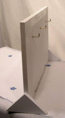 It features three (3) hooks on the front and the on the back for hanging your product and/or simply organizing your necklaces at home.