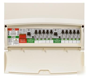 K5666SMAG17ED+8 17th Edition Dual RCD consumer unit with 1 x 100A isolator and 2 x 63A 30mA RCD's fitted. ALSO COMES WITH 8 MK MCB'S !