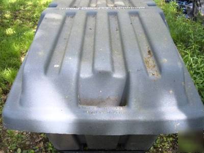 We purchased the cart and lid combo new to do some commercial work on a local hospital project a couple of years ago.We needed a covered cart for "Hospital work" We paid the following price.$924.00 .The cart was used lightly mostly ceiling tile removal maybe 2-1/2 to 3 weeks in 2007 and has been stored since. The pictures show some leaves and dirt if we had used a pressure washer to clean it would look like new. The wheels look new no damage to them. There is a bit of surface rust from being stored but minor .