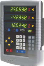 The Newall C80 DRO is everything you could ask for in a digital readout and includes a full complement of productivity enhancing features. The innovative design allows the operator to easily configure the unit for either mill or lathe specific features. In addition, the C80 DRO includes a feed rate display that allows for longer tool life and increased cutting tool performance.
