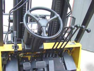 This is a 2004 CATERPILLAR GC55K forklift that is in GREAT CONDITION. GREAT BRAND SOLID CUSHION tires, 12,000 LB lift capacity, AUTOMATIC TRANSMISSION, Side Shifter & Hydraulic fork adjusters which allow you to open and close the forks as well and shift the carriage from side to side.. FULL FREE LIFT - CLEAR VIEW - 3 stage mast. mast lift height 189" and lowered mast height is 92". Strong V6 VORTEC ENGINE. Low hours well maintained truck. Fresh brand new paint makes THIS A STEAL at this price. This lift has all the toys. DEALERS would charge you $49,000 FOR THIS LIFT. Call me with any questions at (***)-553-4275 - available 7 days a week.