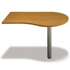 Features scratch- and stain-resistant, melamine surfaces and durable PVC edge banding to protect desk from dents. Unit does not stand alone, must be attached to corner shell, right hand desk or left hand desk. Included sturdy metal support post. The rounded end allows for comfortable guest seating. Desk Type: Peninsula (Not Freestanding); Global Product Type: Peninsulas; Peninsula Style: Right (Not Freestanding); Width: 47 5/8 in.