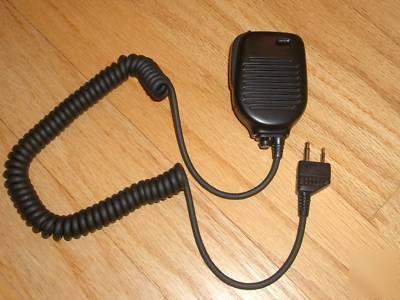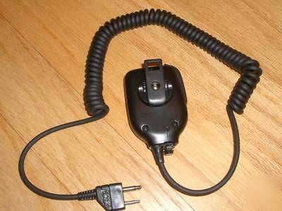 NEW in package Workman Superstar DM-100 speaker/microphone that fits Icom handheld transceivers. Electret condenser microphone element, built-in earphone jack with a standard 3.5 mm plug, PTT thumb switch, spring loaded and metal reinforced lapel clip that rotates 360 , and 3 ft of coiled cord with dual mic/speaker plug. All black microphone and cord.
