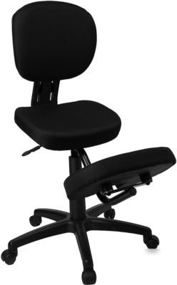 Position yourself properly to task! A kneeling chair will help you to obtain a better postural position in the lower back when working for long periods of time while sitting. One of the benefits with kneeling chairs is that your sitting position and body angle remains 90 degrees or wider when you lean inward. This helps in keeping your back straight and your spine in a perfect alignment. The chair will reduce the stress and tension in your lower back and leg muscles. One big misinterpretation about kneeling chairs is that while sitting in a kneeling chair, the knees bear most of the body's weight. This is not correct!! The kneeling chair does not really bear weight on the knees but instead distributes the weight bearing between the hips and the shins what reduces some of the weight of sitting on the lower back. Kneeling chairs tilt your thighs and hips at about a 160 to 170 degree angle, which allows you to take pressure off your spine and assume more weight in your shins. The knee rests of the chair will keep you from sliding forward out of the chair and losing the optimum sitting position thus again, hurting your back. Even part of the day spent in a kneeling chair will result in better posture than in a traditional chair. A kneeling chair will insure you are always properly positioned to task whether it's in the office or at home. This chair features the Comfort and Support of a Kneeling Posture Chair with the functionality of a conventional Task Chair.