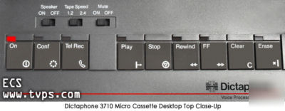 The Dictaphone 3710 ExecTalk voice processing system is designed for the convenience of both the dictator and the transcriptionist. Dictation features include a digital tape counter/locator thatmeasures tape movement in minutes and tenths; a mute control that filters background noise during recording, one-step conference recording, telephone recording (using a telephone recordadapter), and Q-Alert indexing for marking special instructions and end of letters. The ExecTalk desktop unit uses a LiteMike hand microphone with separate Letter and Special Instruction cue indexing controls.