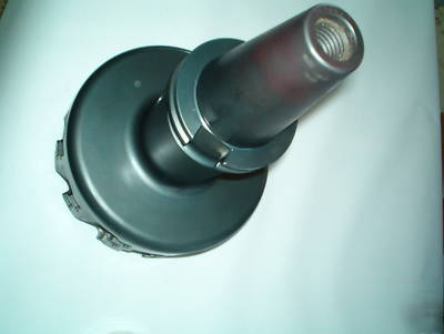 this sale is for 1 INGERSOLL INDEXABLE MILLING TOOL, V-FLANGE SHANK OF UNKNOWN TAPER,,These are the numbers that are stamped on the face of the tool,,6SW6L-0303248R10,, 3028286,, 3046587,,,This tool contains 12 sets of staggered flutes,1 set of flutes requires 4 inserts and the next set requires 3. These flutes wrap around the edge to form a concave type of profile...It is excellent unused, out of box, condition , contains a very light amount of scuffing and tiny amount of scratching on the very face of the tool. I'm sorry but this is all the information that is known. WEIGHS 60 LBS,, 8" DIAMETER,, 3-1/2" BODY DEPTH WITH 2-3/4" FLUTE DEPTH,,, APPX 12" OVERALL LENGTH,,,, THREADS ON TO 7/8" SPINDLE