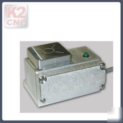 Tool Hit Indicator for CNC routers: This indicator is used to be forgiving to your tool tip. The spring action allows for your tool to touch and not be dulled, chipped or break. If you were to use the conventional measuring block and move the Z travel too far there are possible tool damage that may occur. By using this tool high indicator you can touch off and have the signal relay back to Mach3. The accuracy is rated at .001 but have tested to be +-.0003". Accuracy may vary. You should touch off as center as possible to the indicator block. The indicator links to a home switch located on your Y axis. K2 will provide a Macro via email so that you can place it into Mach 3. The LED light comes on when the contact is closed. The macro will direct the Z axis to move in negative (down) direction until the tool reaches the contact point. Once the contact point is reached the Z axis will move up to the designated Z height and the distance in Z value is inputted into Mach 3. We will assist you in basic setup of the indicator with your purchase. Accuracy: .001 inches. or .02mm Material: 6061 AL Switch Micro Switch LED Indicates Contact. Spring allowance .150 " Recommend Control Software Mach 3 (Mach 2 does not have this feature) Connection Connects to the Y axis. Macros Included See more details below.