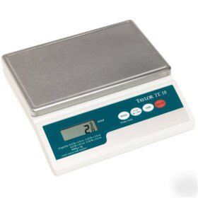 Quick, flexible, and compact, this electronic kitchen scale is ideal for exact portioning and precise ingredient weighing. Though it's designed for professional kitchens, the scale serves household cooks as well. It has a 10-pound capacity (5000 grams) and measures in ounces or grams. A button converts weight on the 1/2-inch LCD digital-display screen from fractional ounces to decimal ounces or to grams. (The scale weighs in increments of 1/8 or 1/4 ounce, 0.1 or 0.2 ounce, or 5 grams.) A tare button returns the scale to zero when measuring ingredients in sequence without removing them from the platform, or it offsets a container's weight. Another button holds a weight for 10 seconds, even after the load has been removed. Operating with a 9-volt battery (not included), the scale shuts off automatically after three minutes without use and has a low-battery indicator; the scale also operates with an AC adapter (included). The 8-1/16-by-5-inch platform is corrosion-resistant, easy-cleaning stainless steel for proper food sanitation. Overall, the scale measures a compact 8-1/16 inches wide, 2-1/4 inches high, and 7-3/4 inches deep. To prolong the scale's life, components are sealed to resist moisture. -Fred Brack