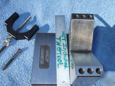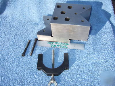 V-BLOCK MULTI-VEE OFFSET STYLE WITH 1 CLAMP BLACK-OXIDED AS SHOWN!! USED ON A MOORE JIG-GRINDER BY A 40+ YEAR TOOLMAKER! WOW WHAT A SWEET TOOL! USA AMERICAN TOOLMAKER MADE TOOLS FOR SURE! NONE BETTER UNLESS YOU CHECK MY STORE FOR MORE!!!! V-BLOCK MEASURES 3.475" WIDE X 3.475" TALL AND IS 6.150" LONG. VEES ARE 2-5/8" OR 2.6" WIDE MEASURED WITH SCALE. EACH END OF V-BLOCK ON SIDE OF VEE HAS (6 OR 12) TAPPED 1/4" X 20 HOLES FOR CLAMP OR AS NEEDED. THERE ARE ALSO ( 3, 12 TOTAL) TAPPED HOLES 1/4" X 20 ON EACH SIDE OF VEE FOR STOPS OR AS NEEDED. IN THE CENTER OF BASE THERE ARE (5) DRILLED AND REAMED 1/2" HOLES TO BOLT TO AN ANGLE PLATE OR DOWN AS NEEDED!! SUPER HANDY TOOL MADE BY USA AMERICAN TOOLMAKERS! SIMPLY THE BEST!!!! LOTS OF SUPER-SIZE PICTURES AND MORE IF NEEDED JUST ASK!